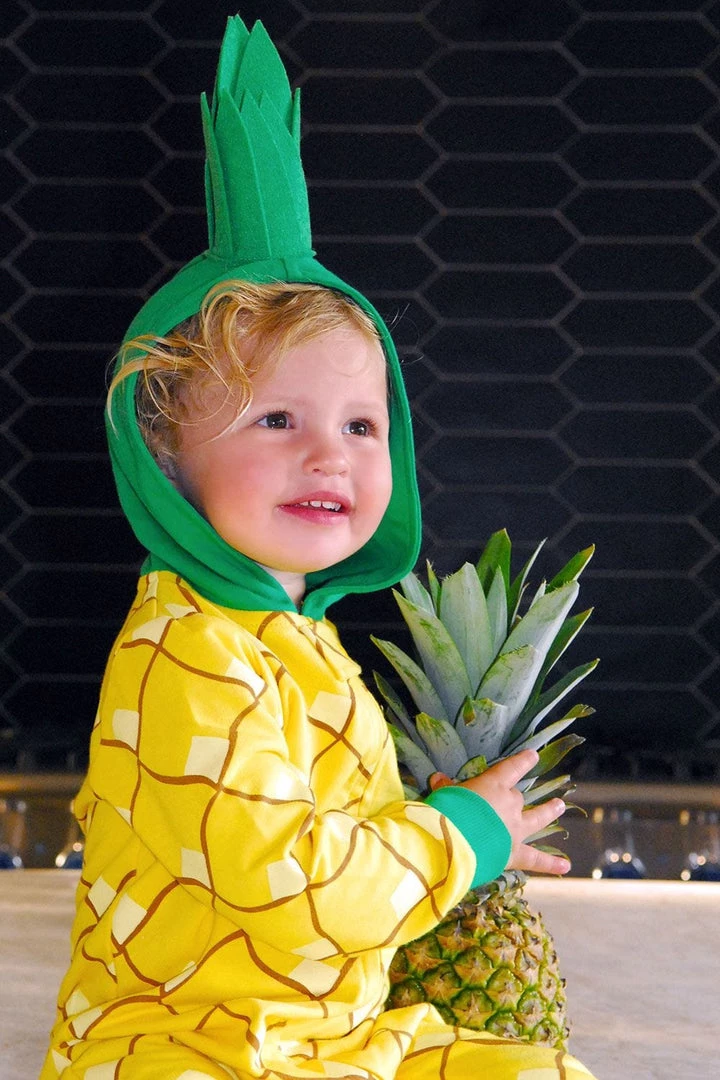 Ever had an aunt tell you your kids are so cute she could just eat them? Our baby pineapple costume probably won’t help if you’ve got any hungry relatives around – it’s bright, it’s spiky and it’s the sweetest Halloween costume you could ever wish for. The baby pineapple costume is every inch a replica of your favorite cocktail fruit, complete with bright yellow and green patterns with convenient hand and arm holes. Our range includes various sizes, so if you’re struggling to find the perfect toddler pineapple costume, ours fits effortlessly and comes with a large front zipper to dress even the most reluctant of kids. If you want to distract your kids from all the candy this Halloween (or just eat it yourself), discourage them with this fruity infant pineapple costume! The spiky hood is sure to be a hit with neighbors, candy-thieving parents and fellow trick or treaters.