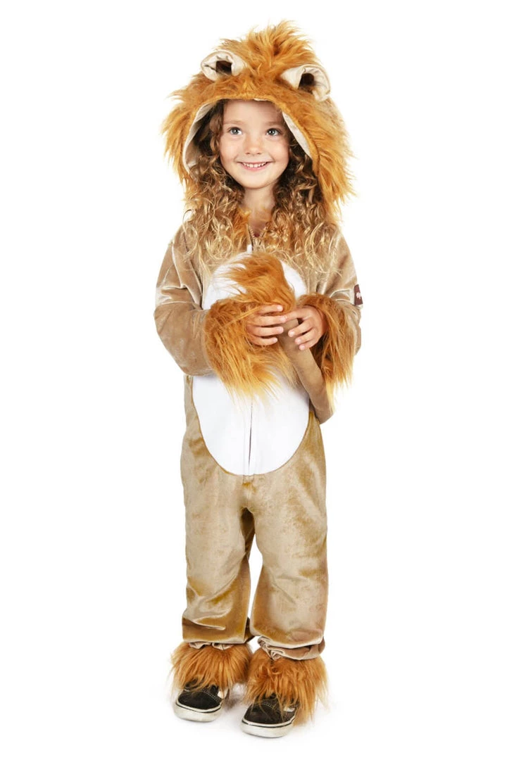 All great royals start out small. Kids. Cubs. Kittens. Just kings and queens of the jungle in waiting. Now it’s time to give everyone a glimpse of your kid’s future. Your heir to the throne will look cute, cuddly, and poised for a long reign in the Kids Lion Halloween Costume for boys or girls. It’s a fuzzy, comy, and warm jumpsuit that zips all the way up to the chin. The hood includes ears and a faux-hair mane (because we couldn’t get close enough to a real lion to get mane samples). This kids Halloween costume is primed for chilly October nights and trick or treating. It can even become your kids’ new favorite getup for the wild rumpus that happens just before bed nearly every night. Hello, lion zoomies. Give your future lion the Halloween they deserve with the kids Lion Costume jumpsuit available for boys or girls. Just try to resist the urge to pick up them, raise them above your head and yell “ah zabenya”.