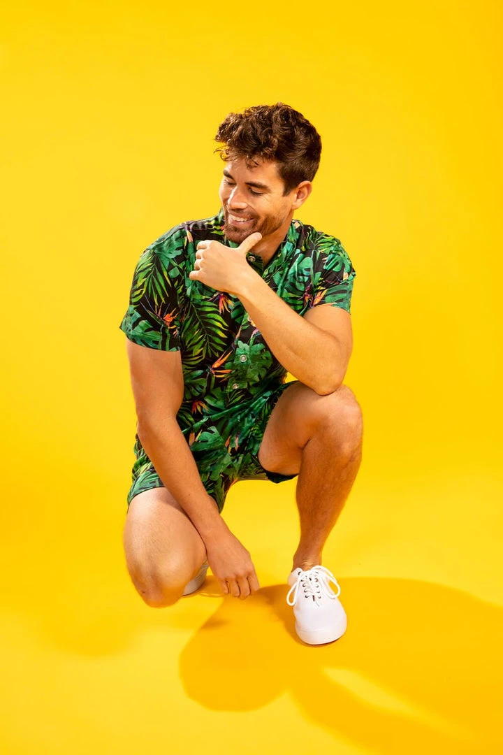 You into botanicals? Suit up for your summer safari in the Men’s Jungle Romphim! Complete with a green leafy print to camouflage you for any and all activities, it’s all you’ll need to camouflage you for the summer ahead. These leafy birds of paradise? Irresistible.