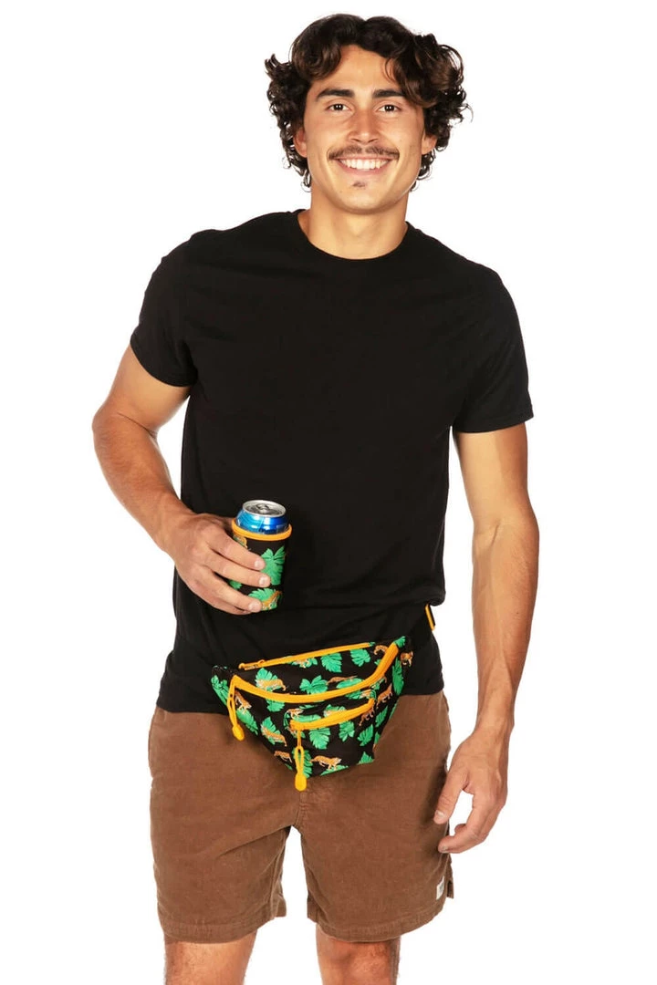 Calling all kings of the jungle! We wish we would have paired this big boy with a completing crown, but all royals know their true status. Show ’em who rules the jungle in the King of Tigers Fanny Pack with Drink Holder and Hidden Pocket! Featuring your wild, wild spirit animal and leafy botanicals printed all over, you won’t want to leaf this one behind this festival season.