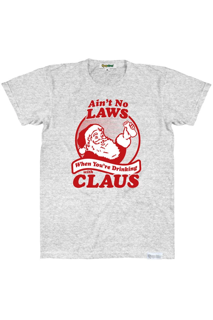 There might not be a stronger bond on Earth than the one that exists between drinking buddies. You’ve been through a lot of drinks (and stuff) together. But until you’ve tipped a few back with the Jolly One himself, you have no idea what’s possible. Grab this Men’s Ain’t No Laws When You’re Drinking with Claus t-shirt and you just might find out. Note: bail money is not included with purchase.