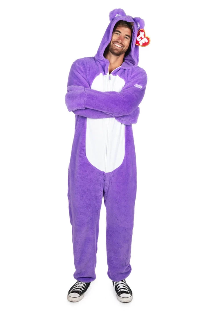 We’re not sure about you, but our moms collected every bean-stuffed animal out there. If it had a red tag on it, we were in. Yeah, our moms were into taxidermy, but that’s beside the point. The Men’s Bean Bear Costume turns you into the biggest collectible of Halloween. The furry, one-piece jumpsuit zips you into something moms everywhere will immediately want to put on a shelf. Complete with paws and furry ears, you’ll be the most huggable beast at the party this year. The best part? It’s completely animal-friendly. That’s correct: we did not actually skin endangered beanie animals to make this. Nope, these are 100% made of magic and purple polyester. Put on the Men’s Bean Bear Costume this Halloween and become the animal that all moms everywhere seek out.
