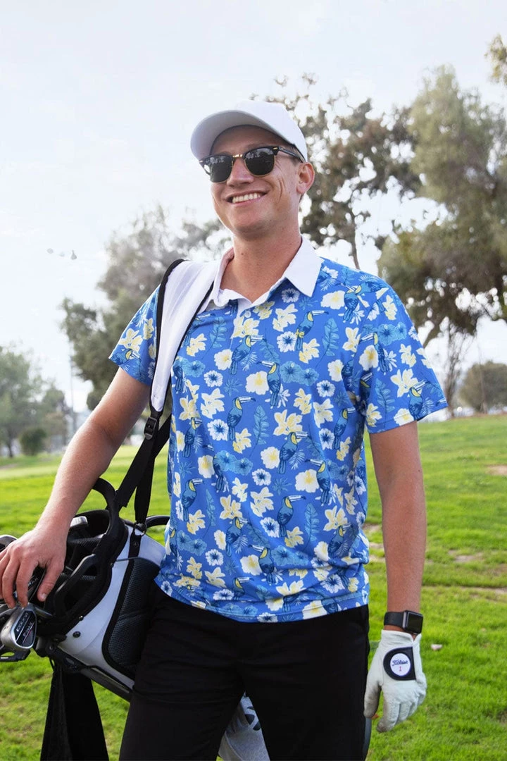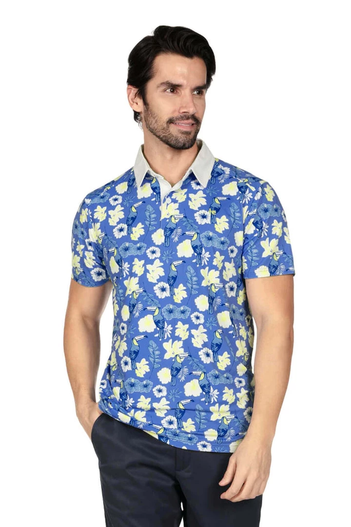 YOU-CAN DO IT. That’s what you’ll be saying to yourself when you sport the Men’s Blue Botanics Golf Polo. It’s a ridiculously great fashion statement made with the best of all breakfast birds and adorned with the highest of ‘biscus flowers. Wear this great-fitting blue beast when you’re hitting the links and it’ll feel like you’re playing Augusta even though you’re on the par 3 of the local community course. The Men’s Blue Botanics Golf Polo gives you the power of a toucan so that your drive is a thing of beauty from the tee to the green (while you’re wearing blue).