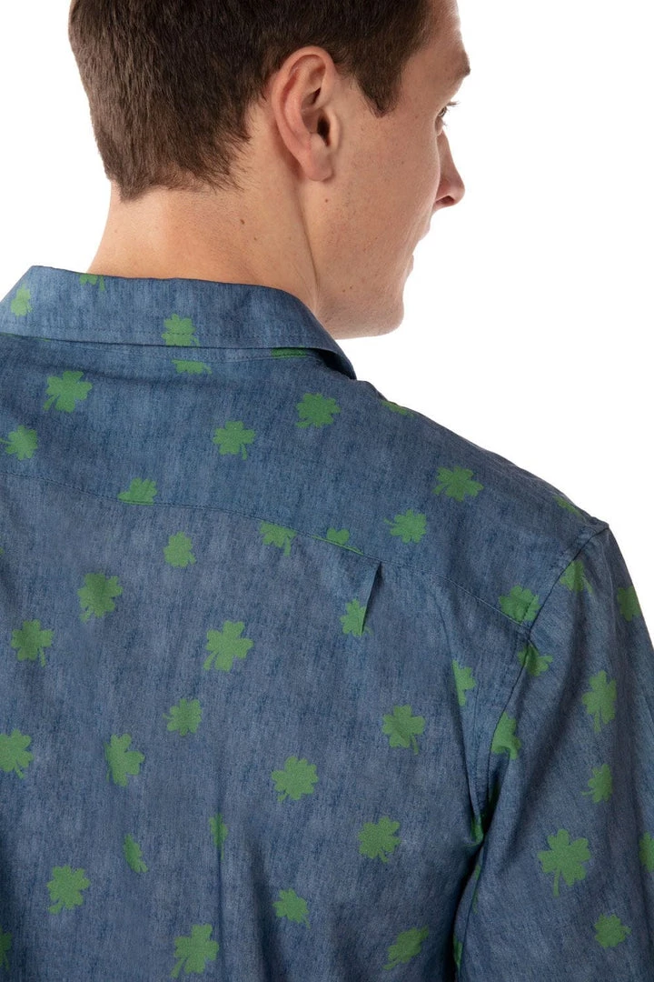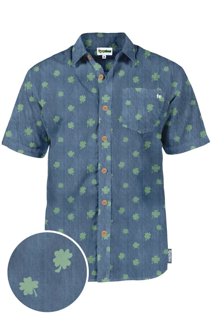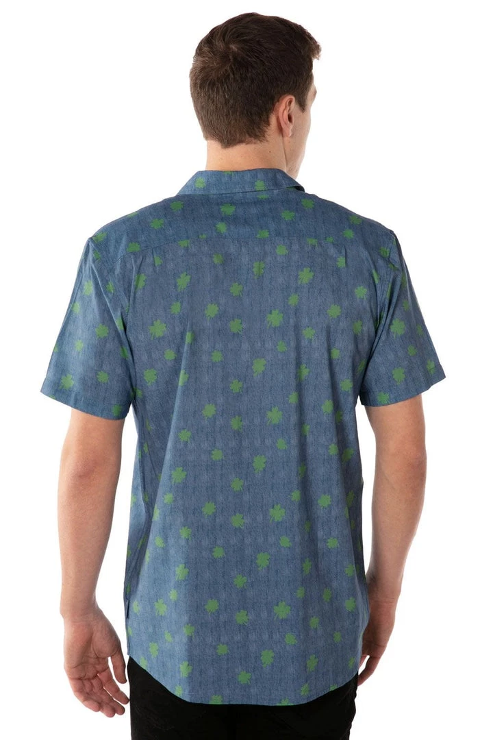 Tipsy Elves Men’s Blue Clover Button Down Shirt