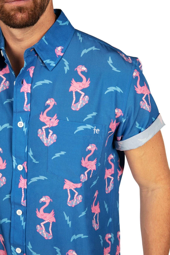 Here’s some career advice for you. Walk into your next board meeting and let ’em know simply, but firmly, that the bird’s the word. Write that down. Next tip, wear the ultra-rad Men’s Board of Paradise Hawaiian Shirt and let ’em know that you’re a professional when it comes to partying. The buttons are totes business casual, and the short sleeves let your forearms do the talking. Nevermind the all-over print of a flamingo that is absolutely shredding through life. This summer shirt says, “Raging is serious business. And business is good.”