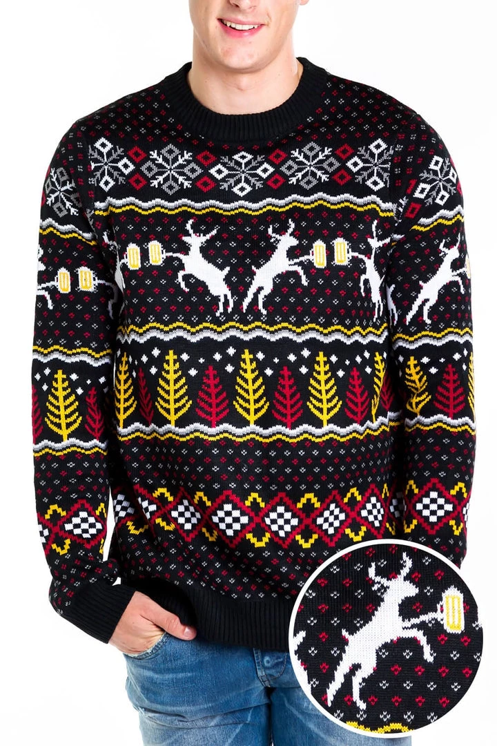 Beer, deer and cheer – all of these make up the ingredients for one fine lookin’ ugly Christmas sweater. This Men’s Caribrew Sweater (kids, that’s Christmas talk for deer) features everything you’d want in an ugly Christmas collection – first and foremost, it’s fluffy and cozy AF, but more importantly, it’s wonderfully reminiscent of 80s Christmas music videos. With delicate patterns of deer, beer, Christmas trees and snowflakes, it’s almost safe enough to pull out at an awkward family Christmas get together. Failing that, when the office ugly Christmas sweater competition rolls into town, you’ll be rocking a festive look that says, hey, I’m ready for the holiday season.but Rudolph didn’t want to be designated driver this year.
