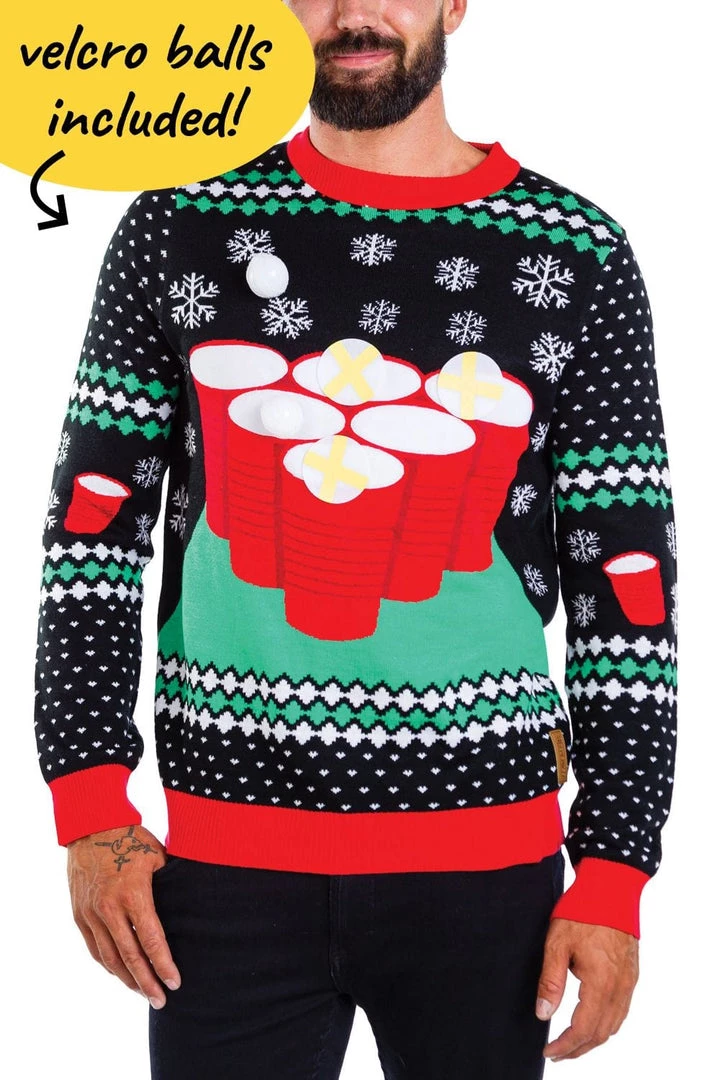 Tipsy Elves Men’s Cheer Pong Game Ugly Christmas Sweater