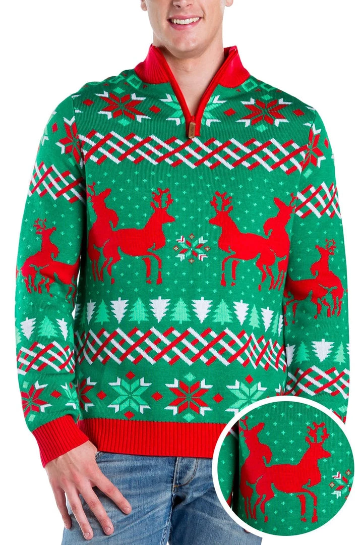 It’s not just Rudolph’s nose that’s lit this winter. The romantic reindeer are back, and they are at it again on this ridiculously raunchy Christmas sweater. It’s everyone’s favorite activity, especially up in the Arctic Circle where there is literally nothing else to do for months on end. You can’t blame them for trying to spice things up.