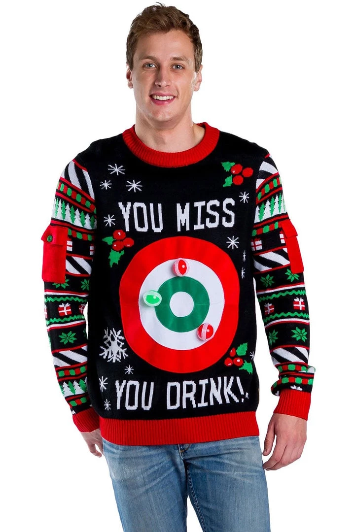 Tipsy Elves Men’s Drinking Game Ugly Christmas Sweater