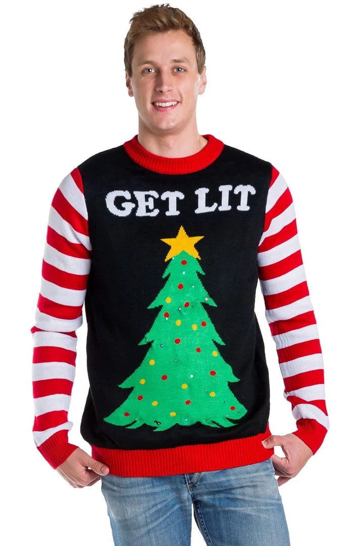 Tipsy Elves Men’s Get Lit Light Up Ugly Christmas Sweater