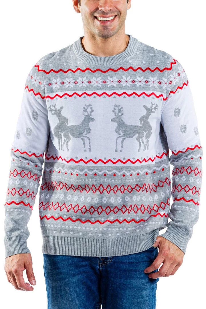 Tipsy Elves Men’s Grey Humping Reindeer Ugly Christmas Sweater