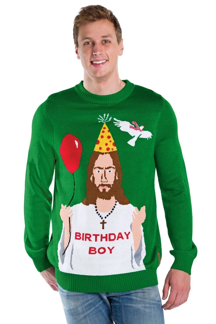 Tipsy Elves Men’s Happy Birthday Jesus Ugly Christmas Sweater