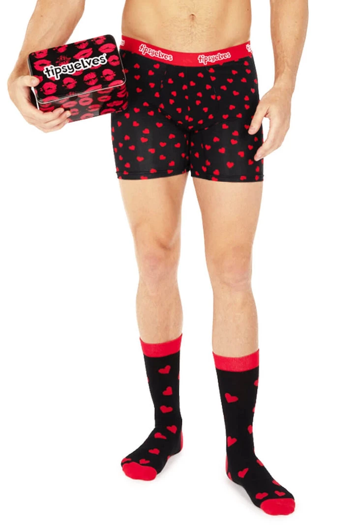 Tipsy Elves Men’s Hearts On Fire Boxers & Socks Gift Set