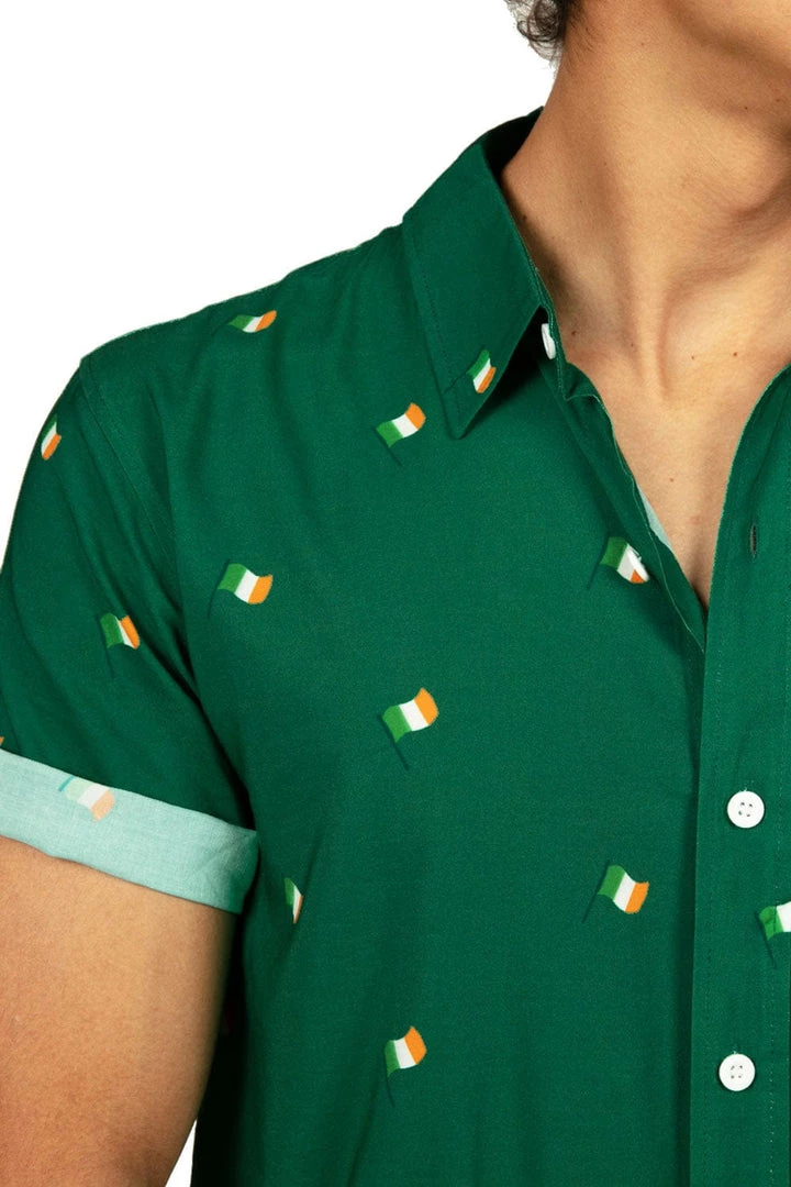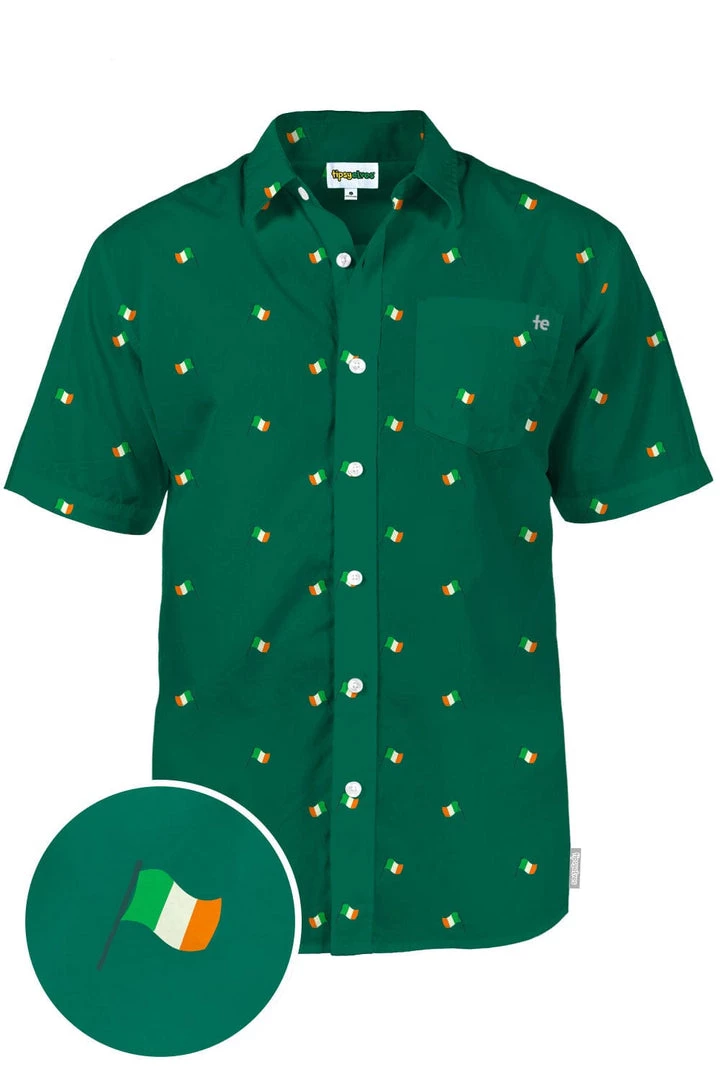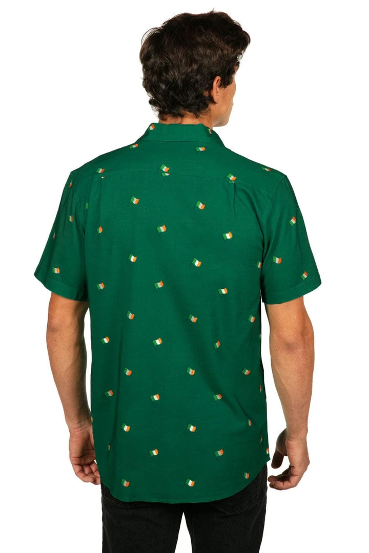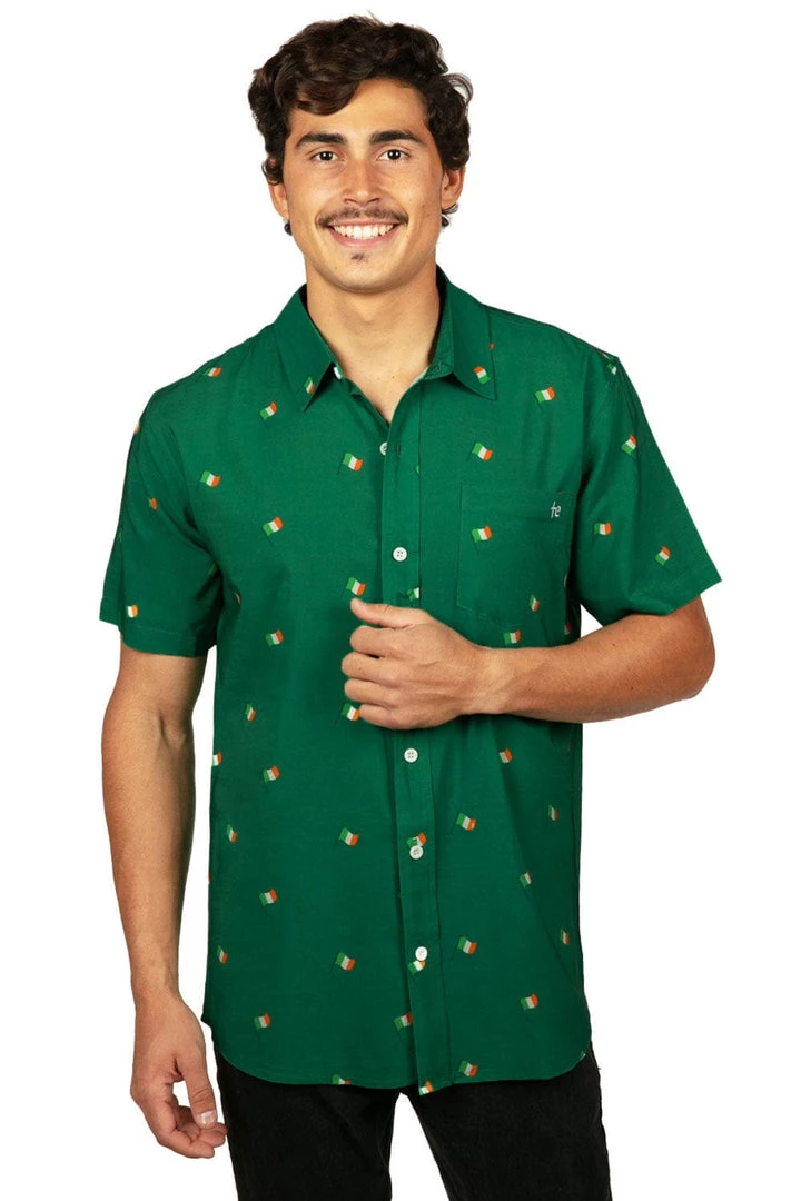Tipsy Elves Men’s Irish Flag All Over Button Down Shirt