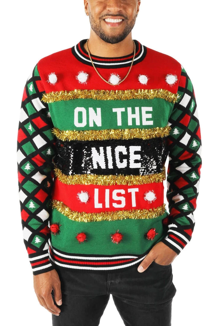 Tipsy Elves Men’s Naughty Or Nice Reversible Sequin Ugly Christmas Sweater