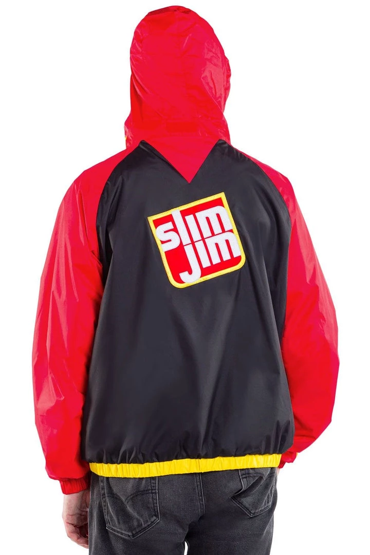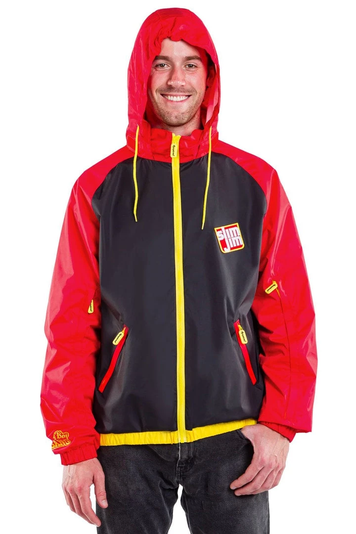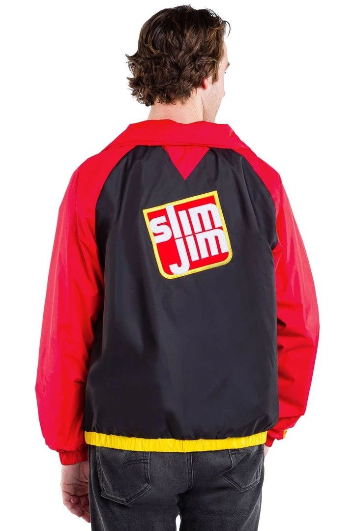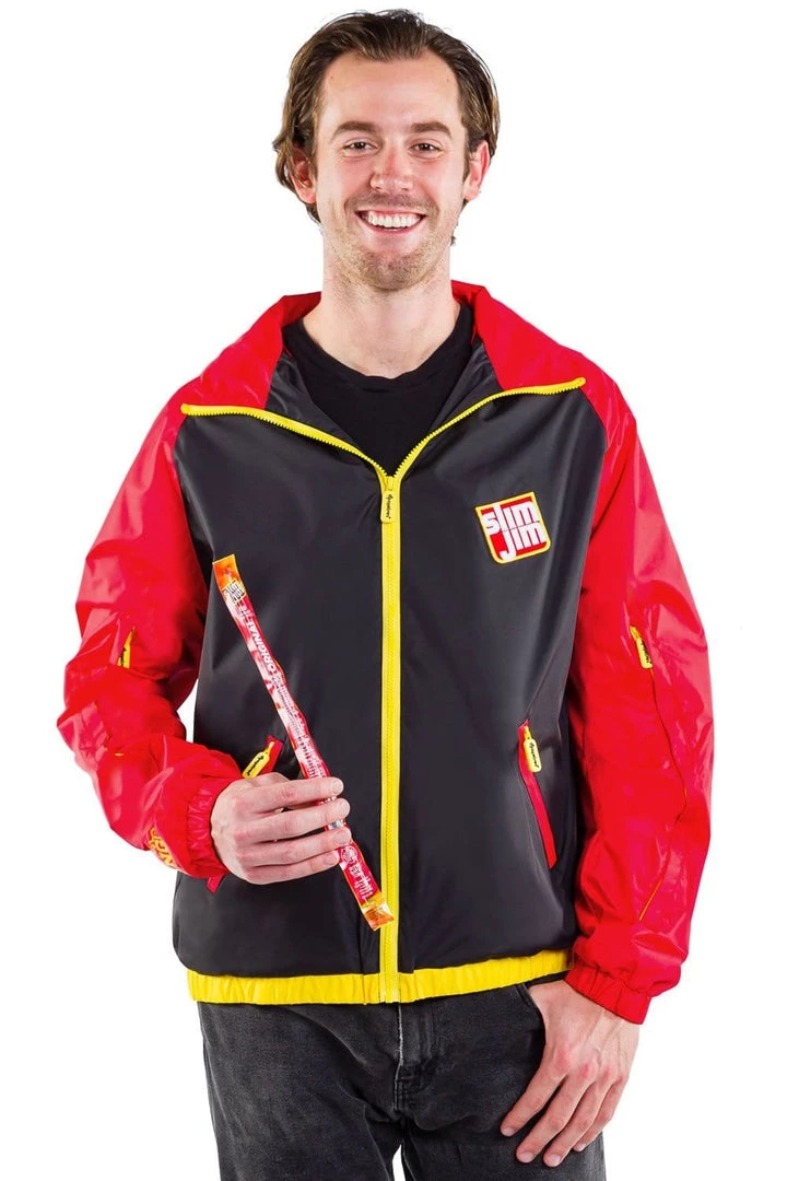 Gentlemen, are you a proud fan of the good old American meat-based snack? You bet your well-dressed ass you are! We’re paying tribute to all things bacon with our Men’s Slim Jim Red and Black jacket. Brought to you by the folks who keep your belly full and your lips smiling, this stylish red and black overcoat is great for ball games. Zip up, head down to the game and get your meat stick on.