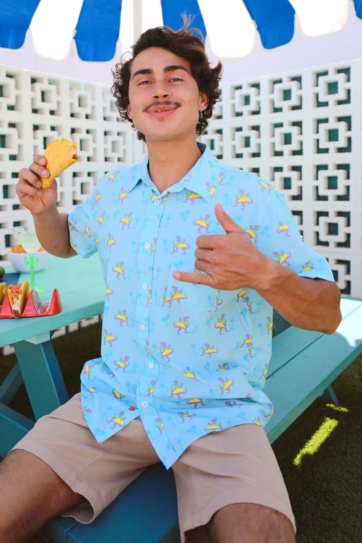 If we remember paleontology class correctly, there were no Tuesdays in the land before time. Only tacos. That makes the Men’s Tacosaurus Hawaiian shirt historically accurate. Printed with the elusive carne-asade-vore, this summer hawaiian shirt will have people cranking their necks like they’re eating a three-pack of crunchies from the local taco truck. Scientifically, it also proves that the T-Rex was actually more evolved than anyone ever guessed-in fact, their short arms made it easier to shove tacos and margs in their mouths. Less distance, more taco is a pretty rad way to live.