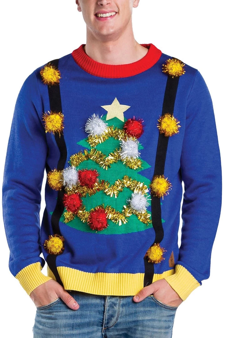 Tipsy Elves Men’s Ugly Christmas Tree Sweater With Suspenders