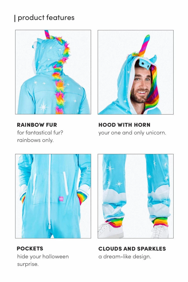 Who said festive had to be frightful? Is your best friend a leprechaun and your roommate a fairy princess? If you fart glitter and sneeze rainbows, then man, oh man, do we have the costume for you. Forget tricks this Halloween, with our Unicorn Jumpsuit you’re in for a real treat. IF you’re sick of sexy costumes, get on that mystical tip and try this unicorn onesie on for size. No assembly required. This one-piece wonder comes with horn and sassy tail included. And our Unicorn Jumpsuit is so magically comfortable, we’re sure you’ll be wearing this onesie all year long.