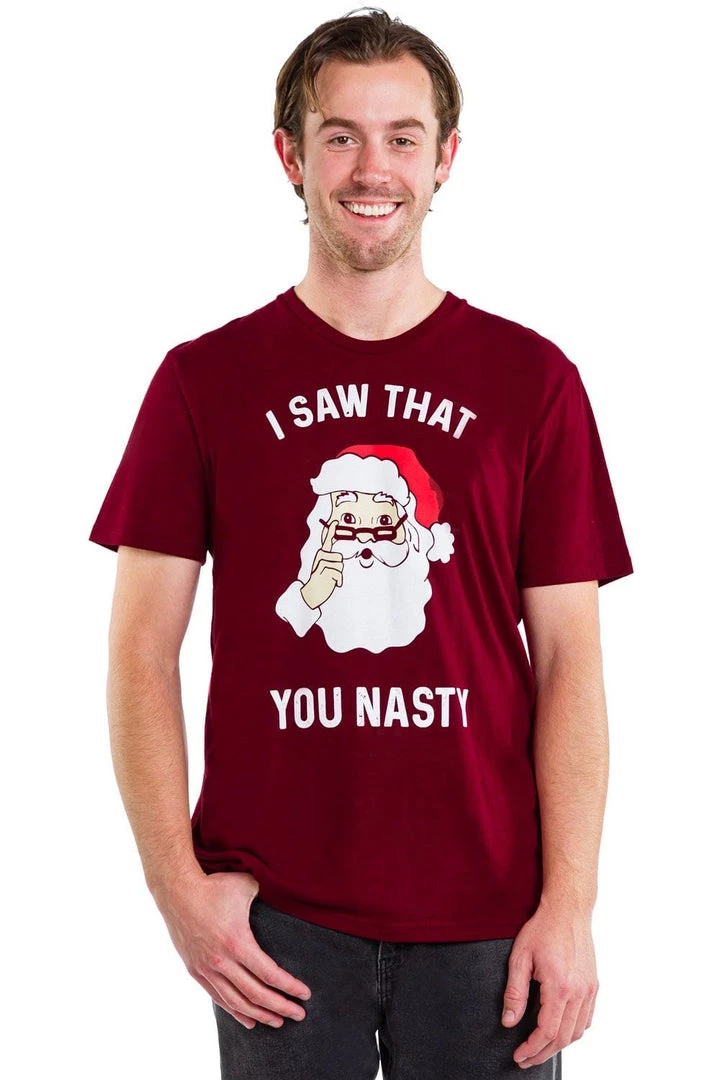 Forget naughty or nice. Have you been nasty this year? Oh yes you have. Don’t forget, Santa and his little elves are watching you all the time or at least, your smartphone is. This year, we’ve taken the traditional naughty or nice routine and switched it up with our Men’s You Nasty shirt. This straight-talking tee shows a very judgmental looking Santa waving his finger at you but you can see there’s a twinkle in his eye. A glimmer. Sorta like he’s telling you you’re awesome. So you get a lump of coal this year. So what? You have an awesome t-shirt.