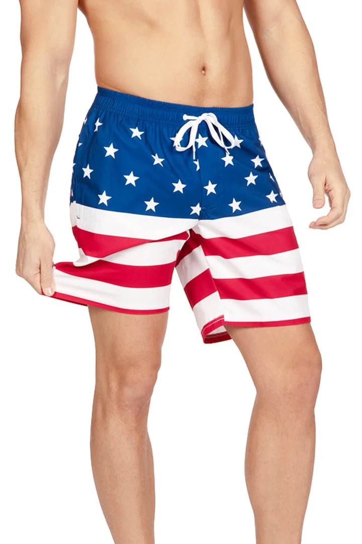 Tipsy Elves Patriotic American Flag Stretch Swim Trunks