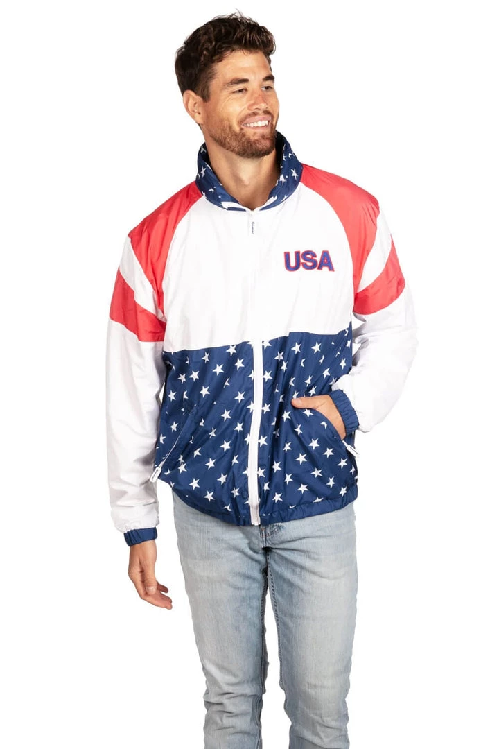 Tipsy Elves Patriotic Men’s USA Windbreaker Jacket