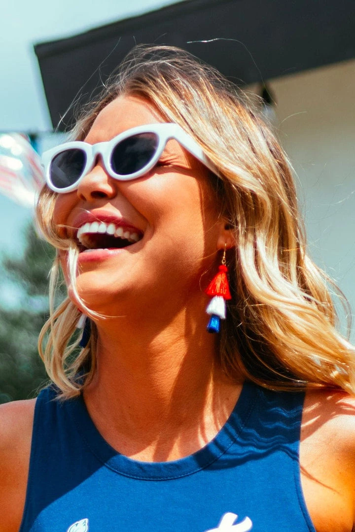 United, we accessorize. It’s in one of those important documents somewhere, we’re pretty sure. Don’t check, though. Accessorizing is one of the most patriotic things you can do – especially when it’s in red white and blue tassels. Show up flaunting your freedom in the Patriotic Tassel Earrings.Â