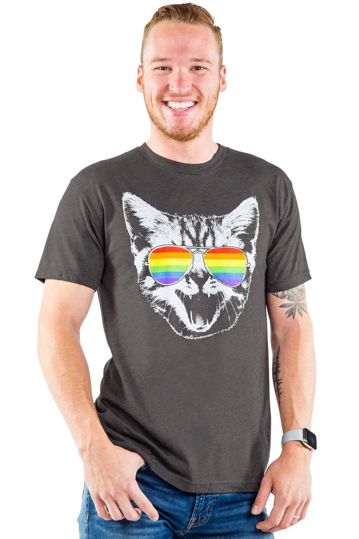 Get ready to celebrate at your next pride march with a tee featuring an animal who does pride purrfectly. After all, when was the last time you met a cat that gave a furry rat’s backside what you thought of it? Be like the cat and show everyone that they can admire you or buzz off!