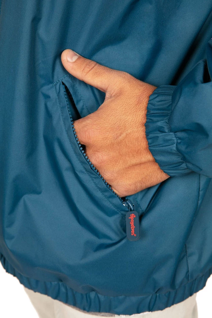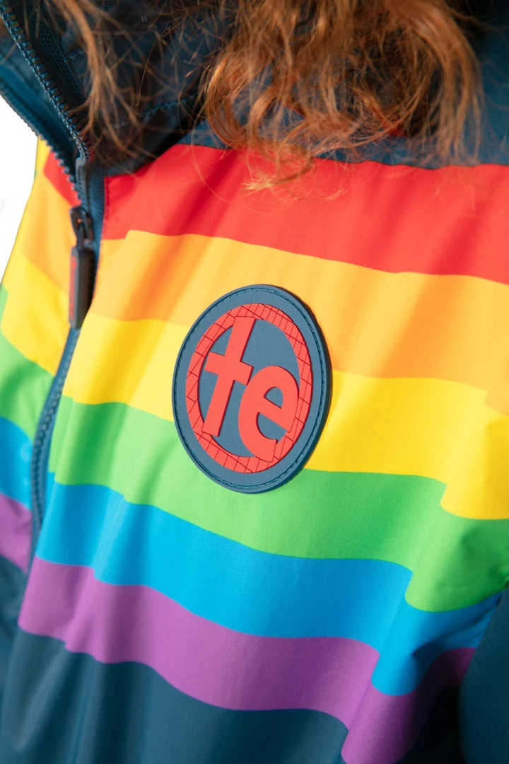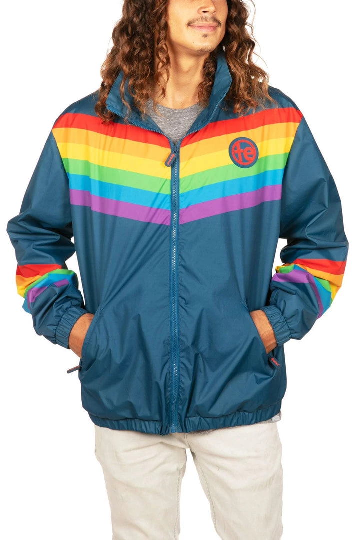 In order for there to be a rainbow, there must be, well – rain. As you wait for the sun to break through again, sport the lightweight Men’s Cut Rainglow Windbreaker Jacket to perfectly reflect the beauty after the storm. No matter the weather, the neutral blue and pop of rainbow color makes it the ideal jacket for everyday.