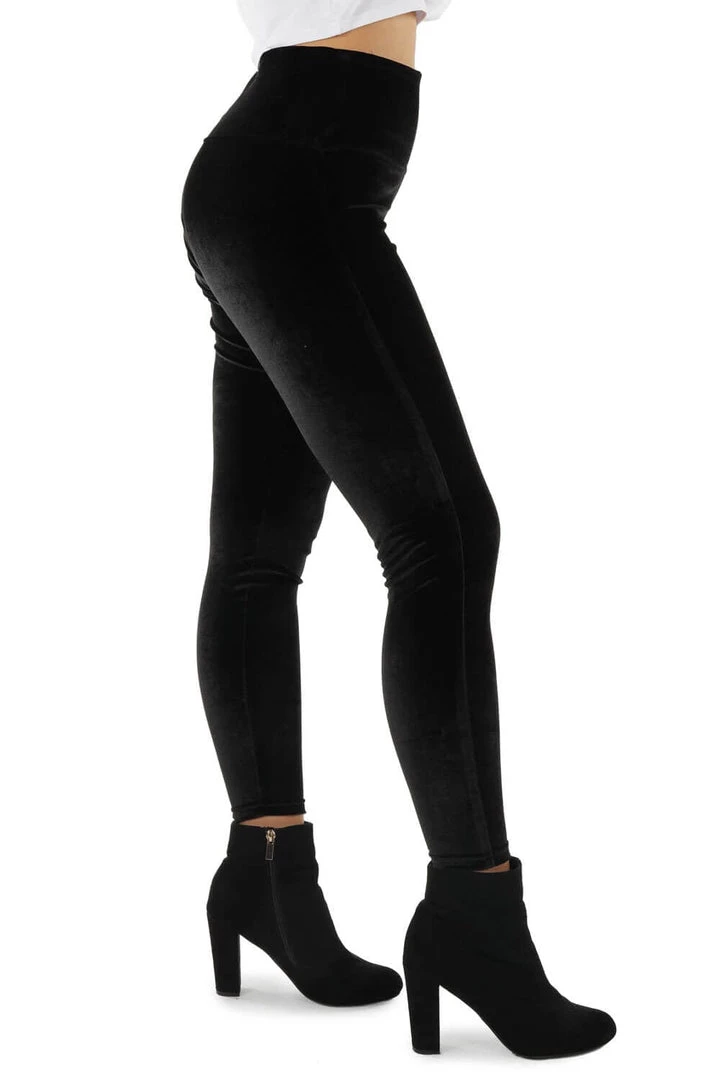 Tipsy Elves Women Black Velvet High Waisted Leggings