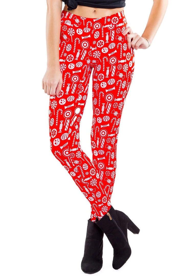 Do you want your legs to look as sweet as candy? These leggings will add a delicious twist to your winter wardrobe. And they go with everything in your closet: tacky Xmas sweaters, cute Christmas dresses, and much more. So, get your sugar rush in style this winter with stretch pants that are made for holiday feasting.
