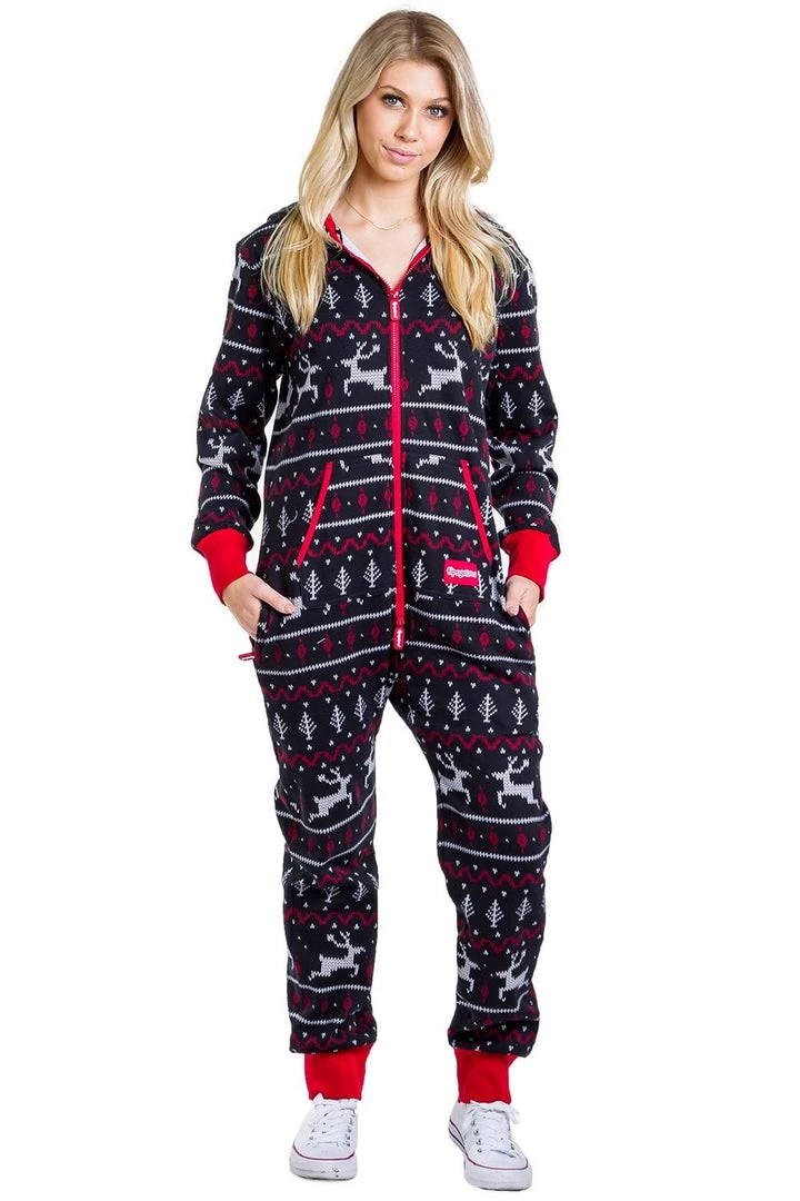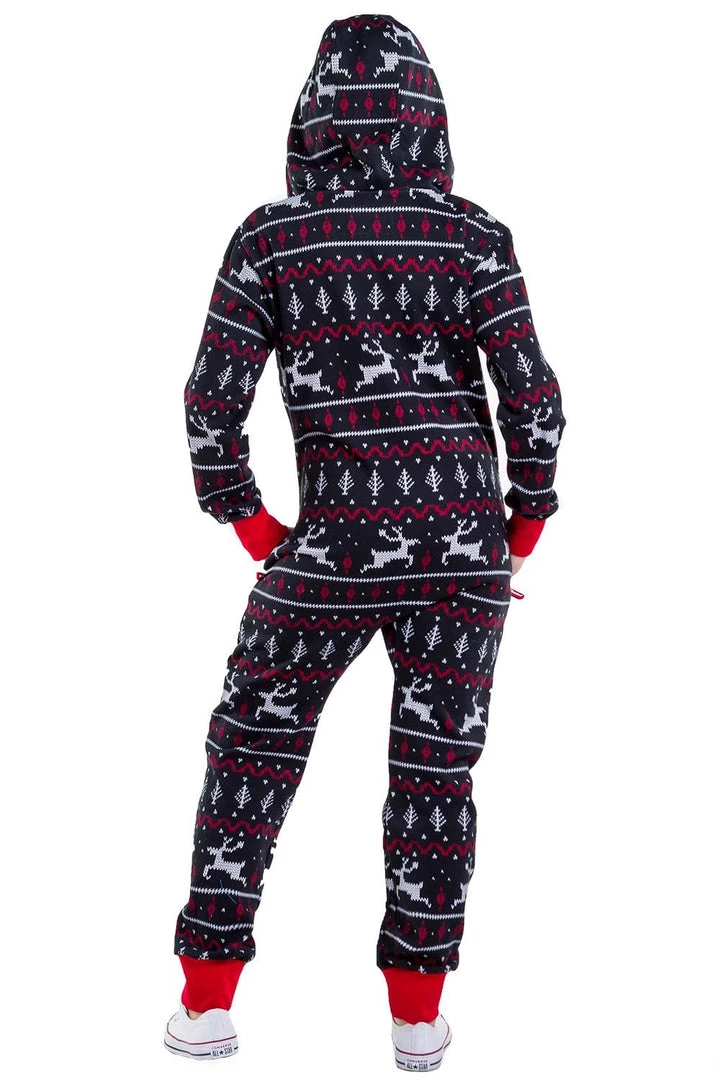 Tipsy Elves Women’s Black And Red Fair Isle Jumpsuit