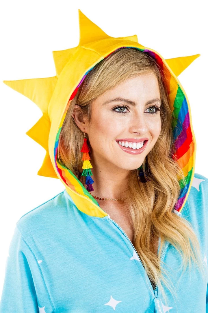 Who needs doom and gloom at Halloween when you have such a sunny disposition? This year, add a little color to your celebrations with our women’s chasing rainbows costume. This super soft and furry jumpsuit features all the colors of the rainbow. And that’s just in the legs. There’s also a super starry sky topped off with your very own sun hat – we’re not talking about sun protection. Your fellow party guests might see this as some sort of homage to the weather, but you’re bowing down to the style gods. How many other Halloween costumes could you also rock at Pride celebrations? Or even as an extra in the school play? The versatility of this speaks for itself. Accessorize with 1 million tons of candy for extra sweetness. And if you’re not feeling so summery the next day, just cuddle up in comfort. Let Mother Nature take care of you.