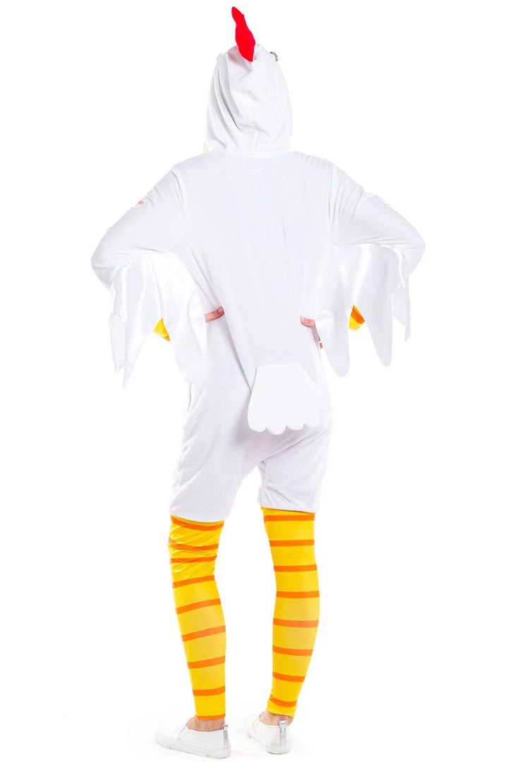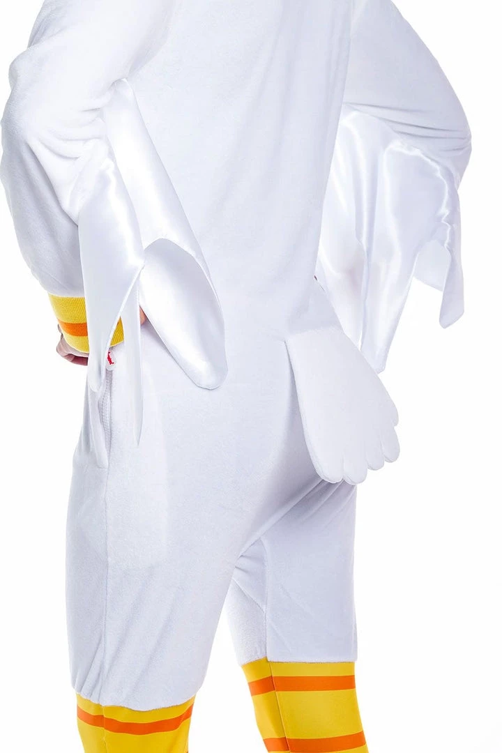 Are Halloween party invites sending you clucking crazy? This October, quell your outfit fears with this hilarious adult chicken costume. Our women’s chicken costume features a soft white faux feather torso, making you feel every bit the beloved farmyard animal with none of the odor. Amongst a sea of ghouls and witches, you’ll really stand out in a chicken Halloween costume, if not for the feathers, then for the fancy red and yellow chicken legs. Complete with convenient hand and foot holes, this adult chicken costume doubles up as a super comfortable jumpsuit, allowing you to dance (the Funky Chicken) to your heart’s content. To top it all off, there’s even a charming beak and chicken head combo when you pull the hood over your head. It’s warm enough to trick or treat in, and agile enough to dance, so stop squawking and get ordering your very own chicken jumpsuit.