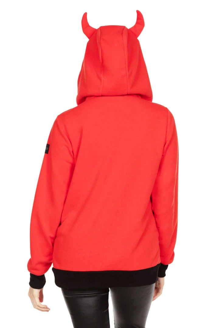 Oh, hello hot stuff. Or should we say “cozy and comfortable” stuff. The Women’s Devil Hoodie leaves the temptation to everyone’s imagination while keeping you bundled up and horn-ed up as can be. Zip yourself in the comfy, quality materials of this sweatshirt and then raise the hood when you’re ready to raise some hell. With built-in horns, this Halloween hangout piece doubles as an instant costume so you can stay at room temperature while looking hot as hell. Who knew a hoodie could do so much? Seems almost sinful. So, when other chicks are throwing some icy cold shade your way, you can zip up in a piece that turns up the heat. Pick up the Women’s Devil Hoodie and discover for yourself why this sweatshirt is comfy as heck. That’s right, we don’t cuss. That would be sinful.