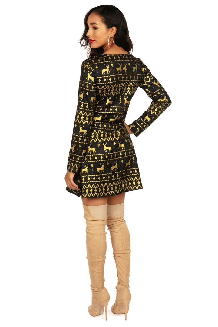 Tipsy Elves Women’s Gold Foil Fair Isle Dress