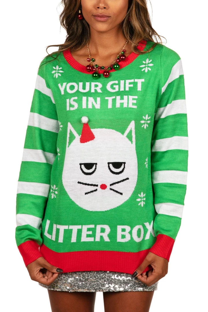 Tipsy Elves Women’s Litter Box Freeform Sweater