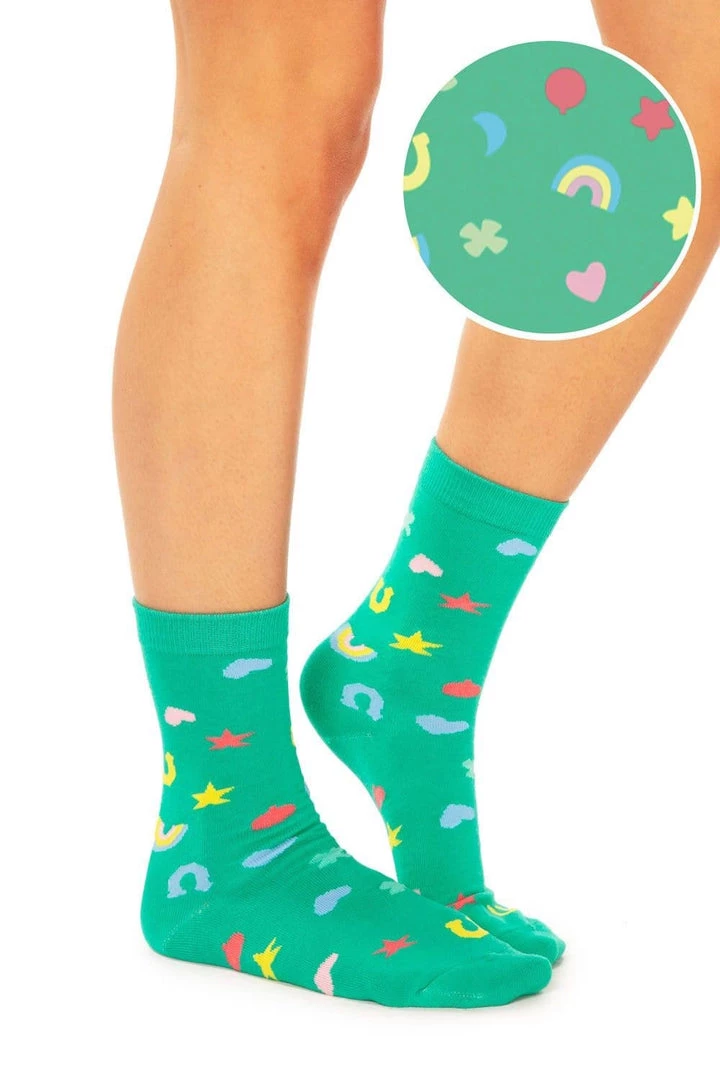 Ladies, need a little dash of your own Lady Luck this St Patrick’s Day? All you need is a subtle accessory – these Women’s Lucky Charmer socks are just the ticket. They’re covered ankle to toe in all things classic Irish. Rainbows, shamrocks, stars and moons will all make your feet feel like a million dollars. Of course, you can pair them with our matching shirts if you’re really looking to strike it lucky.