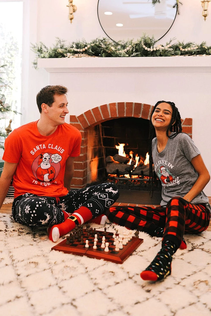 I’m a lumberjack and I’m okay – I sleep all night and I work all day! Cool story bro, but we’ll just take the sleeping, thanks. With these red and black plaid lumberjack joggers, you can kick back and chill this Christmas, just like Jesus would have wanted. These women’s Christmas joggers are rocking a versatile black and red pattern, making them not only festive enough to whip out at Christmas, but pretty much appropriate for any time you’re watching football or recovering from the night before. Sling them on to open presents, and keep them on all day – with an elasticated waist, they’re great for wearing all the way through to dessert.