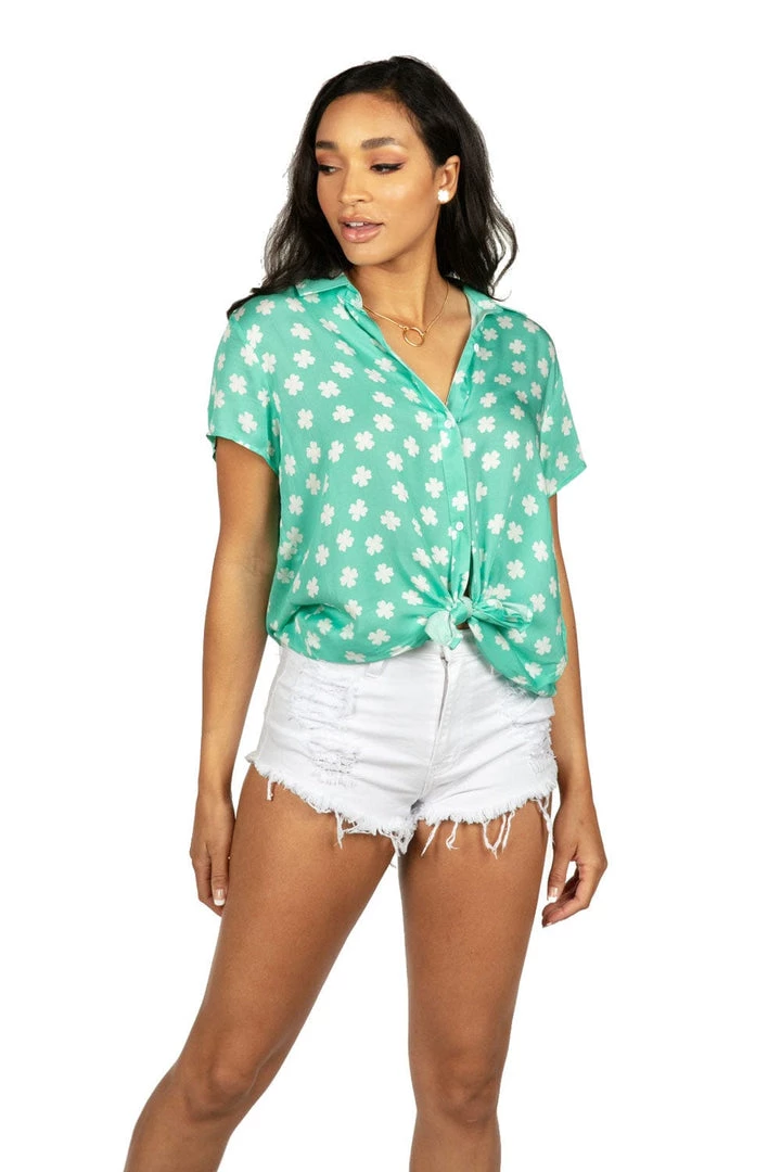 Breath? Fresh. Outfit? Fresher. The Women’s Minty Mama Button Down features medium sized white clovers laid out on the freshest of spearmint greens to help you keep your cool all St. Patrick’s Day long. Rock up to the bar in refined, spearmint condition. Leave in…probably less than that Mint mama, take me home!