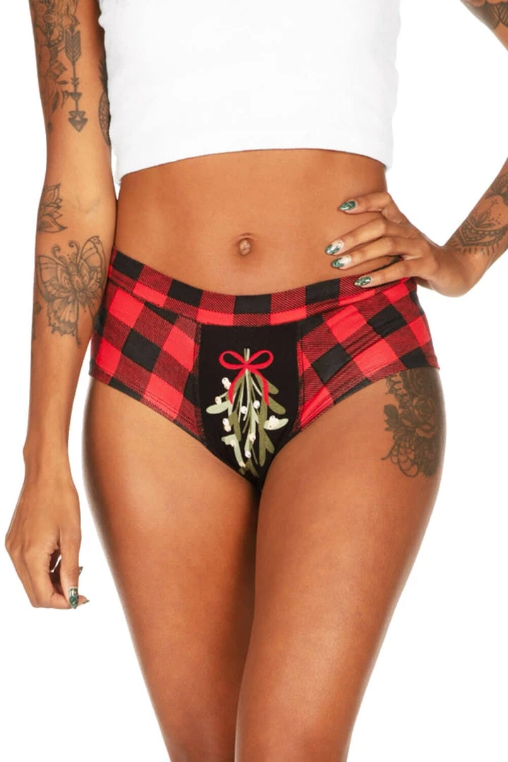 It’s one of the oldest holiday tricks in the book: “accidentally” run into your significant other by the mistletoe, act shocked when you’re both there – and then feel obliged to observe tradition. These women’s Mistletoe underwear let you turn the tables on your partner, putting you in charge when and where the kiss takes place. Of course, since you’re technically supposed to be UNDER the mistletoe when that happens, you’ve got some fun additional planning to do.