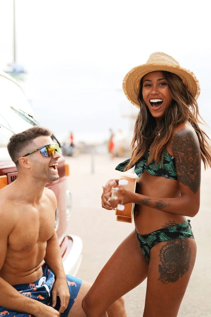 There’s nothing like laying underneath the palm trees. Unleash your inner beach babe with our Women’s Palm Princess Bikini Bottoms, whose black and green design will instantly reel in the compliments. Good for posing by the pool, but better for rocking out at beach parties, these skimpy bottoms hit maximum fierce when they’re paired with a palm princess bikini top.