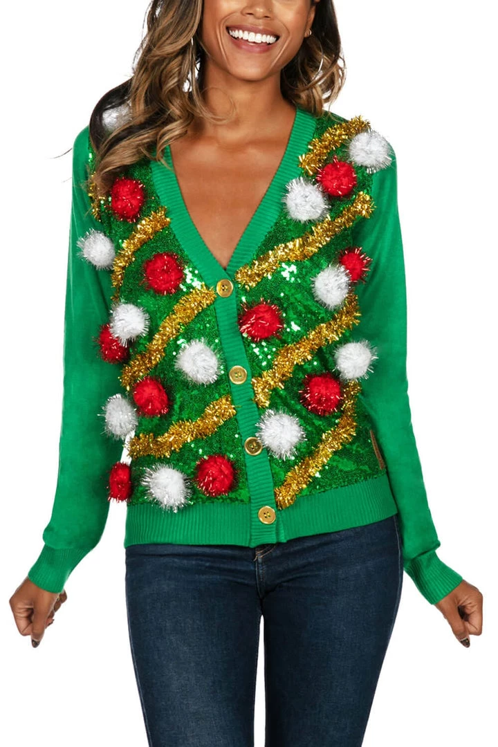 Tipsy Elves Women’s Pom Party Ugly Christmas Cardigan