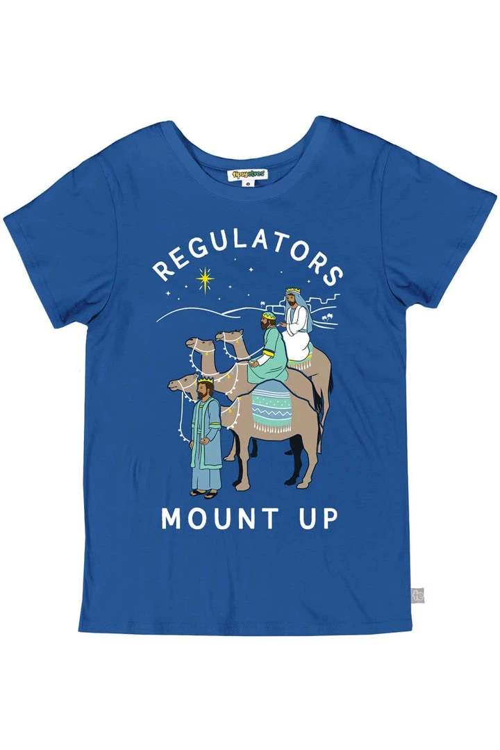Who said anything about wise men? We’re moving on to wise women. This year, get your squad together with our Women’s Regulators Mount Up tee. The 100% cotton tee puts a modern spin on a nativity classic, and will guide you in your quest for more Christmas booze. Forget the crib – it’s all about the kegs this year. That’s some real wisdom right there.