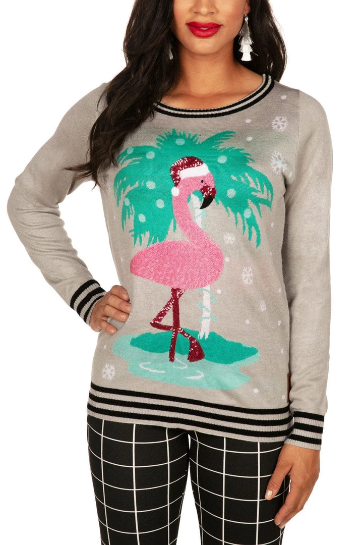Tipsy Elves Women’s Sequin Flamingo Ugly Christmas Sweater