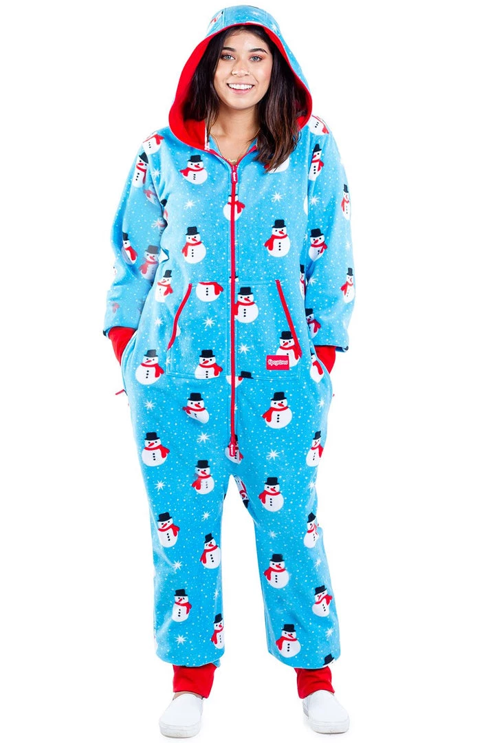 Chestnuts roasting on an open fire, Jack Frost nipping at your nose, No thanks. How about Frosty the Snowman nipping at your butt? With this Women’s Snowman Is An Island plus size jumpsuit, Frosty covers pretty much everywhere the eye can see. This super cool blue one-piece is a break from the norm of reds and greens, instead focusing on the wonders of snow at Christmas. Ah. Is there a bigger joy than pummeling your neighbor with snowballs? Stay out of the zone of conflict with this super cozy jumpsuit. You’ve got the couch ; the kids can have the cold.