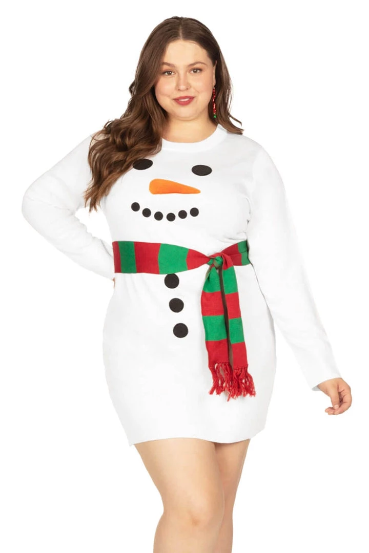 Tipsy Elves Women’s Snowman Scarf Plus Size Sweater Dress