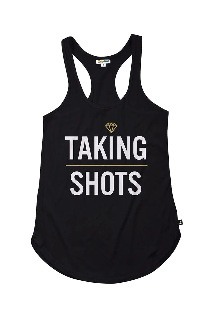 Bottoms up, buttercups! The bride may have the vows, but the bridal party has the bar. Let loose with your favorite groomsman in our Women’s Taking Shots Tank Top.