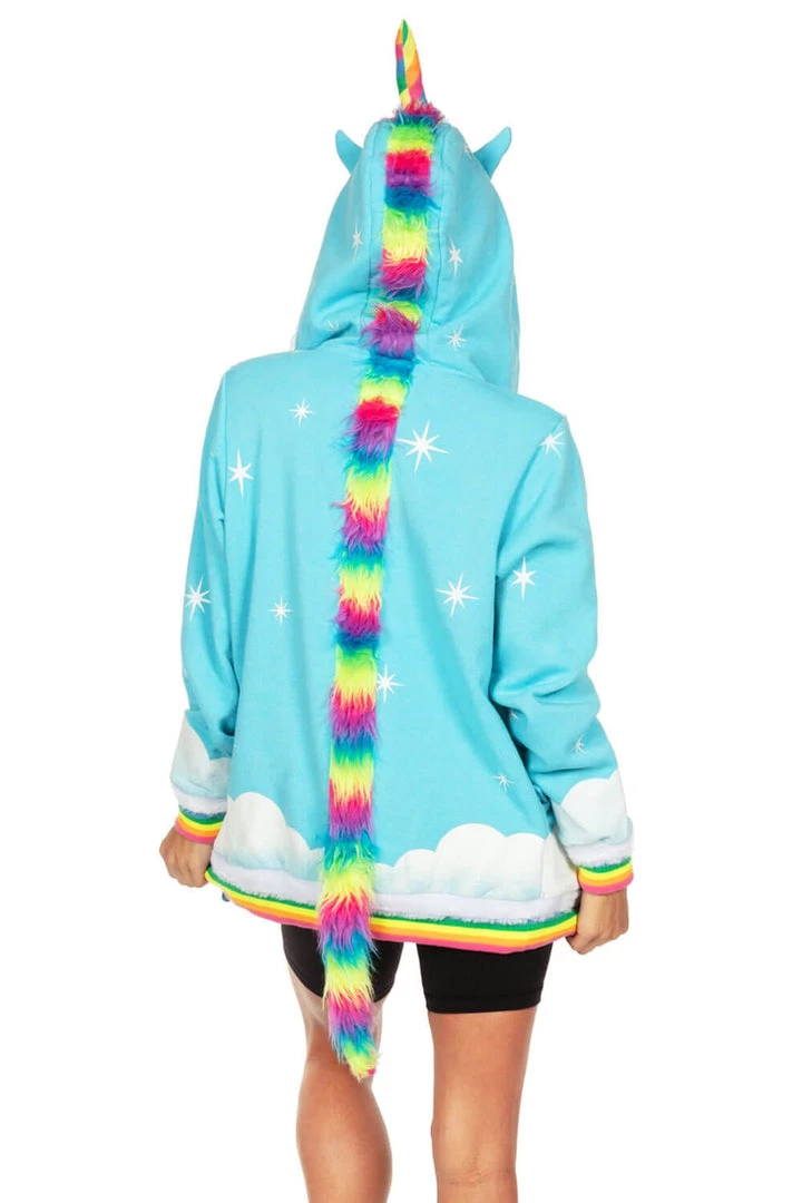 Hey honey. You got something sticking out of your forehead. It’s uhhhh, not a zit. No, it’s like a huge horn. I would say you should get that looked at, but why? It’s like a rainbow horn. The Women’s Unicorn Hoodie might as well be called the uni-crown hoodie, because this shows off just how rare it is to find a beauty like you. It’s a super comfy, warm, high quality sweatshirt adorned with starry-sky-blue colors and rainbow touches everywhere, including the inside. Because a unicorn queen has sweet tarts for guts and poops rainbows. So whether you’re looking for an instant Halloween costume or just something to curl up in while in a candy coma, the Women’s Unicorn Hoodie is the answer. But those other things are definitely pimples and you might want to get them looked at.