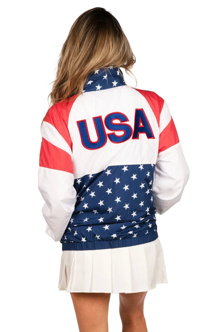 USA! USA! US…ayeeee girl! We see you repping your country out there. Show off your stars and stripes in the Women’s USA Windbreaker Jacket! With stars covering your lower half and red stripes all about, you’re basically an olympic gold medalist. It’s just too easy to pretend – it’s our little secret.